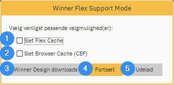 - Hvis du klikker på Spring over, beholder du cachen og genoptager opstarten af Winner Flex.