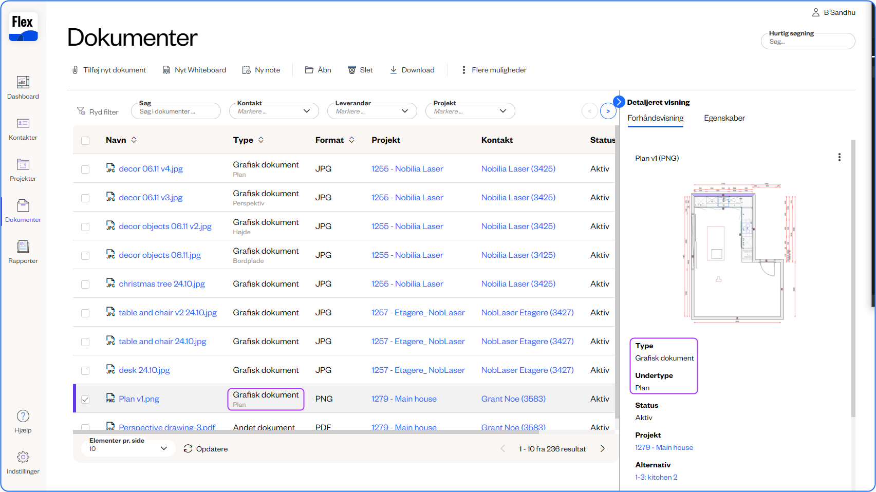 Ny undertype til grafiske dokumenter - Når du gemmer et grafisk dokument på Flex-platformen, vil det nu have en underkategori af plan, perspektiv, opstalt og bordplade. Undertypen kan også filtreres på, når du ser dokumenter på platformen.