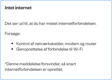 - Klar besked om afbrydelse af internettjeneste - Når dit internet er nede, vil du modtage en tydelig besked, så du er klar over, at der skal tages handling: