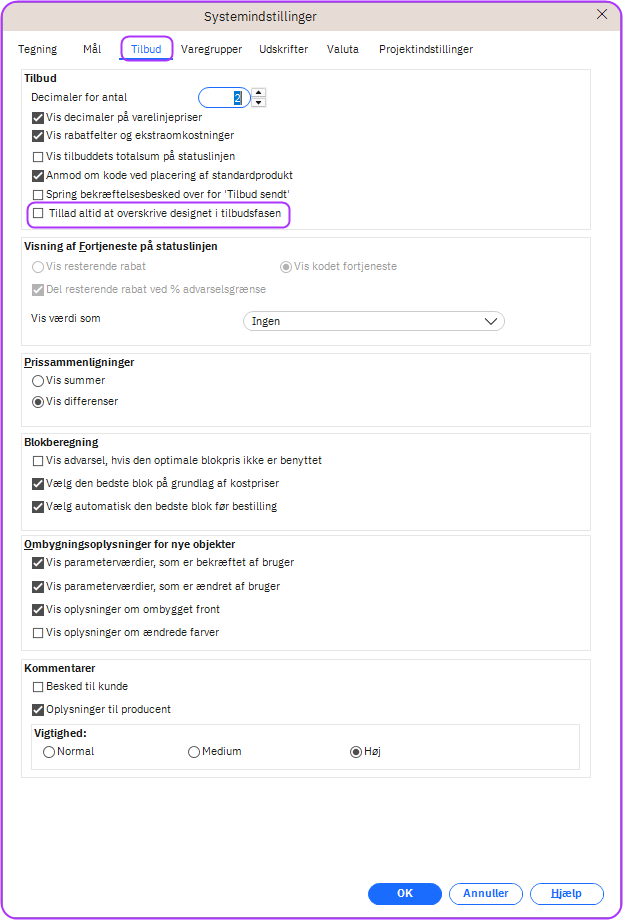 Tillad overskrivning af designs med status Tilbud sendt