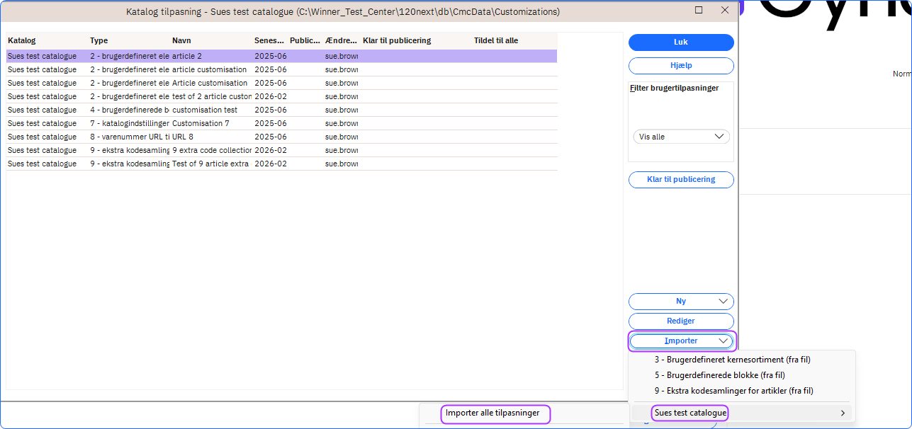 Når du opgraderer til en nyere katalogversion, er det nu muligt at importere alle eksisterende tilpasninger på én gang.