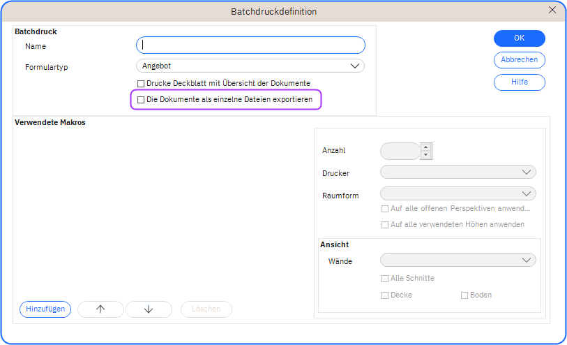 Möglichkeit zur Erstellung einzelner Dateien beim Batchdruck - Wenn Sie in den Systemeinstellungen eine Batchdruckdefinition erstellen, besteht zusätzlich die Möglichkeit, die Ausdrucke als separate Dateien zu erstellen. Sie können diese in einem Schritt erstellen, und sie werden auf der Flex-Plattform in die verschiedenen Dokumenttypen gespeichert. Wenn Sie beispielsweise einen Batch mit einem Kaufvertrag, der ein Verkaufsdokument ist, und einem Grundriss, der ein grafisches Dokument ist, erstellen, werden sie mit der neuen Option nun als einzelne Dokumente unter dem entsprechenden Dokumenttyp gespeichert. Für weitere Informationen klicken Sie hier.