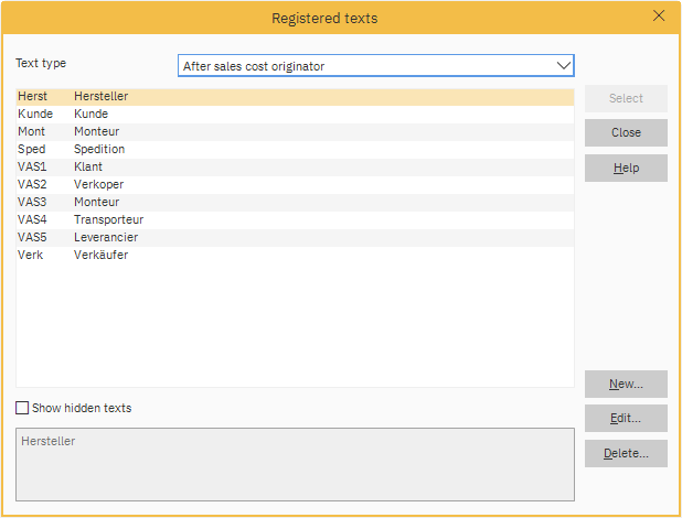 You can register your own text for drop down options in Winner, that can be used later in all projects. The texts are used, amongst other things, as the drop down options when creating a contact, adding transport terms, payment terms, delivery terms and timelines.