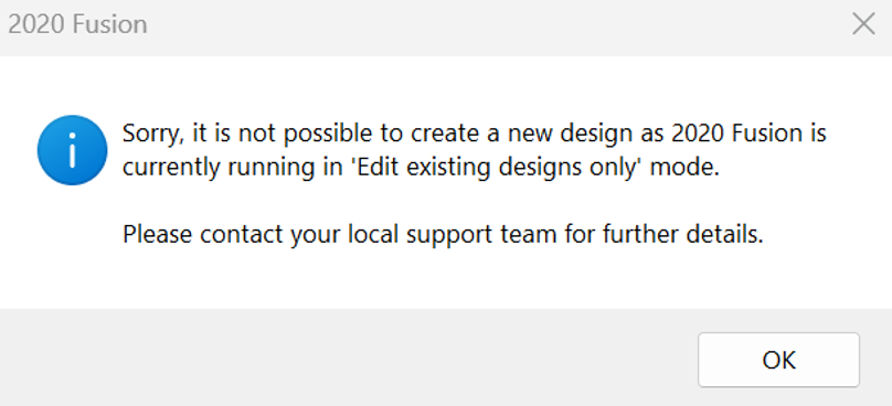 At the end of Phase 2, you will no longer be able to launch 2020 Fusion directly and the below error message will appear.