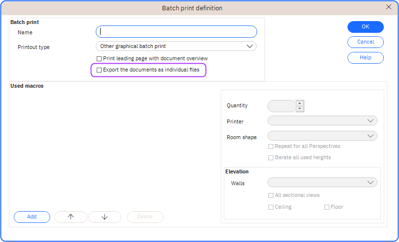 Option to create individual files when using a batch print - When you create a batch print definition in system settings there is an additional option to create the printouts as separate files. You can generate them in one go and they are saved on the Flex platform split into the different types of documents. For example if you create a batch with a Contract, which is a Sales document, and a Plan, which is a Graphical document, with the new option they will now be stored as single documents under the related document type. For more information click here.