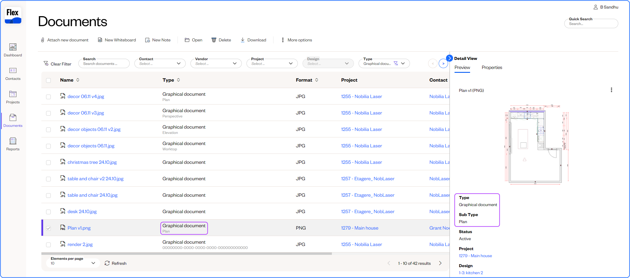 New sub-type for graphical documents - When saving a graphical document to the Flex platform it will now have a sub-category of plan, perspective, elevation and, worktop. The sub-type can also be filtered on when viewing documents on the platform.