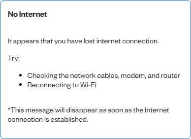 - Clear notification of interruption to internet service - When your internet is down you will receive a clear notification so that you are aware that action needs to be taken: