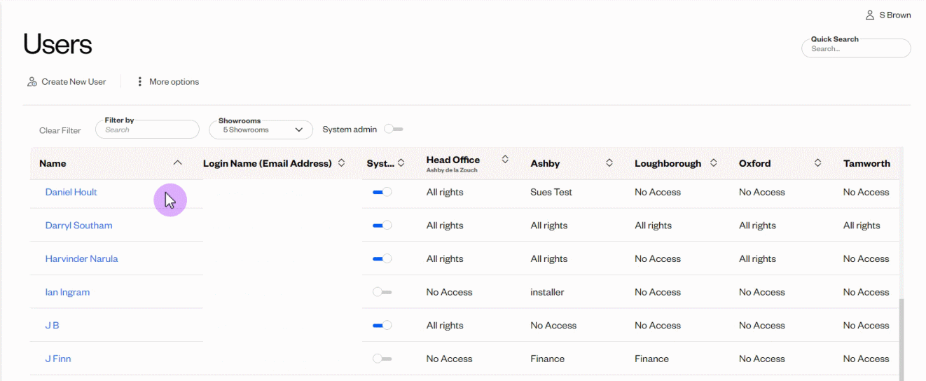 Under the Shop column heading you wish to assign the user to click on No Access and, from the drop-down list, select the type of access you wish to give them. If you have multiple shops you can assign them different types of access per shop: