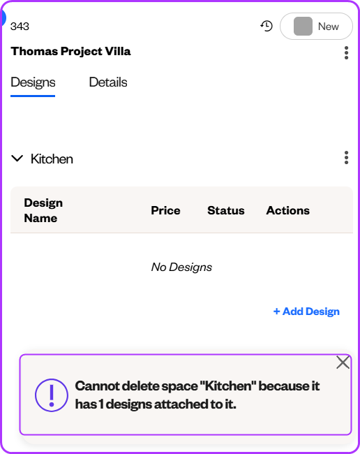 Note: If the project has a status of quotation sent against a design you cannot delete the project until the design is set to lost or the quotation deleted.