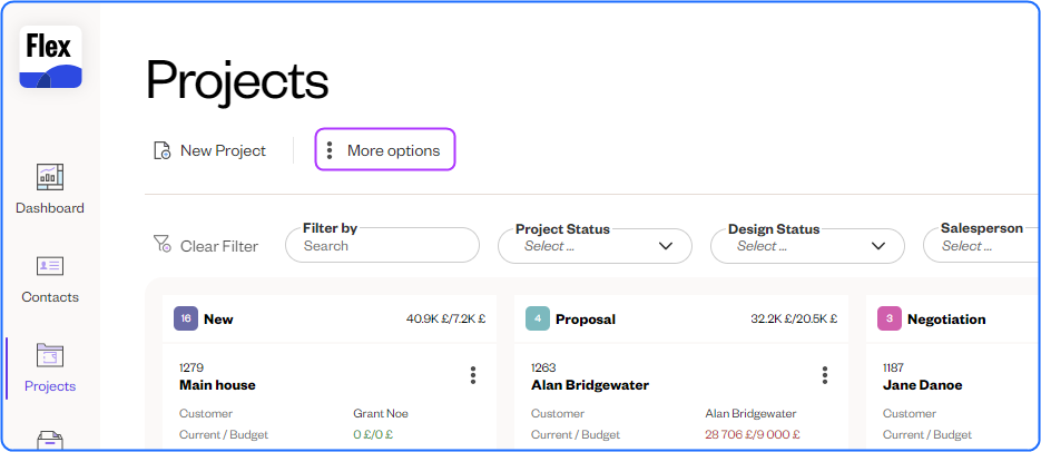 More options icon has moved - When on the Flex platform the more options icon was on the toolbar giving it a different location dependent on the page options. This has been moved to above the toolbar so it can be easily seen and used.