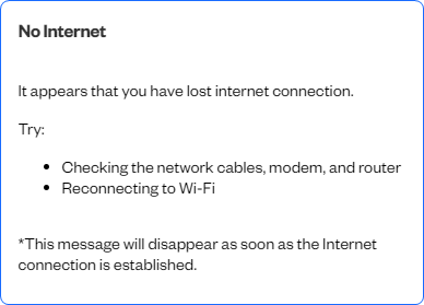 - Clear notification of interruption to internet service - When your internet is down you will receive a clear notification so that you are aware that action needs to be taken: