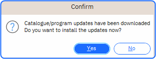 Note: Whilst downloading catalogs or software updates you can continue to work in Winner, but during installation you cannot work in Winner. Therefore you may prefer to click No and install at a more convenient time. If No is clicked you will get a prompt to install each time you reopen Winner.