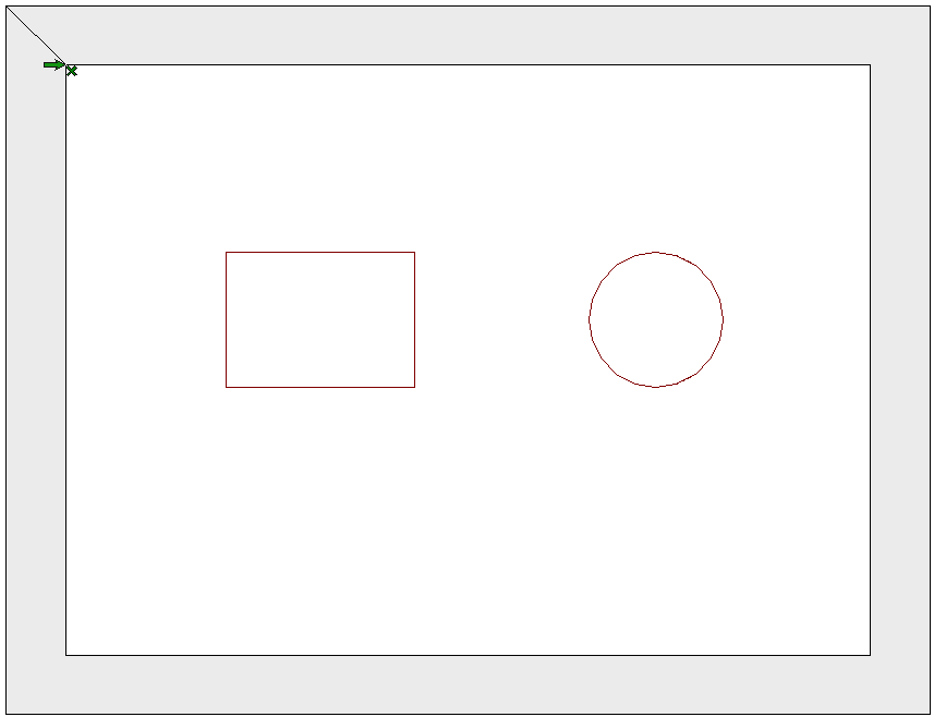 In this example, we will use a rectangle and a cylinder as the cutting shapes: - Select Free drawing of filler icon and draw the filler shape around the object being used for the cut-out. The filler should be placed and overlap with the cutting shape where you want your cut-out to be. In this example, we are creating a rectangular hole in the left filler and a circular hole in the right filler.