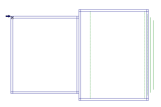 - In the Worktop plan window, your cursor will be displayed as a saw. Click on the edge of the worktop where you want to start the cut, release then click again and drag the mouse to the opposite worktop edge where you want the cut to end. Release the mouse button to make the cut.