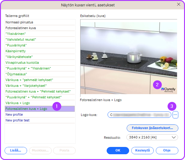 - Logo näkyy kohdassa Esikatselu (esimerkkikuva).