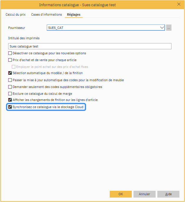 - Décochez l'option Synchroniser ce catalogue via le Cloud