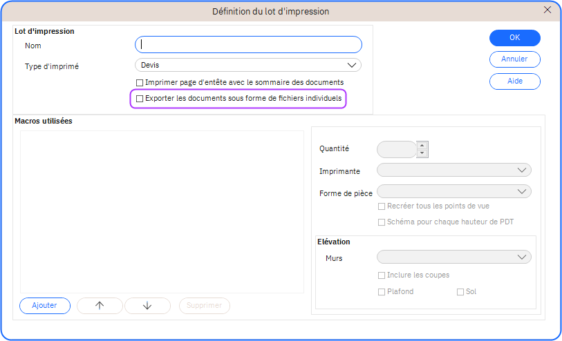 Possibilité de créer des fichiers individuels lors de l'utilisation d'un lot d'impression - Lorsque vous créez un lot d'impression dans les réglages système, il existe une option supplémentaire pour créer les impressions sous forme de fichiers séparés. Vous pouvez les générer en une seule fois et ils sont enregistrés sur la plateforme Flex répartis dans les différents types de documents. Par exemple, si vous créez un lot avec un Bon de commande, qui est un Document de vente, et un Plan, qui est un Document graphique, avec la nouvelle option, ils seront désormais stockés sous forme de documents uniques sous le type de document associé. Pour plus d'informations Cliquez ici.