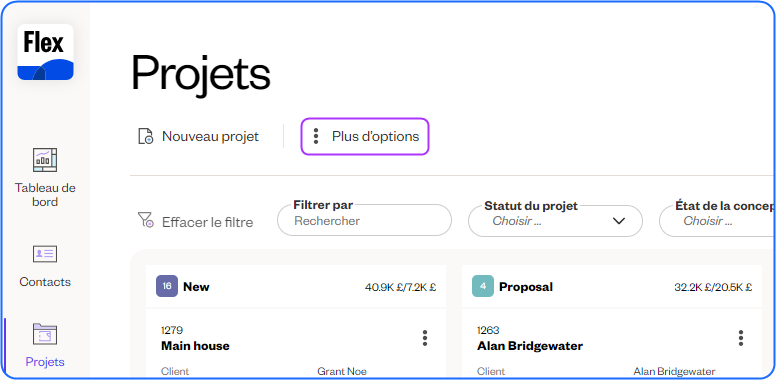 L'icône Plus d'options a été déplacée - Lorsque vous êtes sur la plateforme Flex, l'icône Plus d'options se trouve sur la barre d'outils, ce qui lui donne un emplacement différent en fonction des options de la page. Cela a été déplacé au-dessus de la barre d'outils afin qu'il puisse être facilement vu et utilisé.