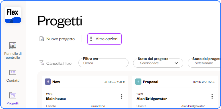 L'icona Altre opzioni è stata spostata - Sulla piattaforma Flex l'icona "Altre opzioni" si trovava sulla barra degli strumenti, assegnandole una posizione diversa a seconda delle opzioni della pagina. Questa opzione è stata spostata sopra la barra degli strumenti in modo che sia più facile da vedere e utilizzare.