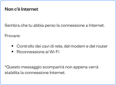 - Notifica chiara dell'interruzione del servizio Internet - Quando la tua connessione Internet non funziona, riceverai una notifica chiara in modo che tu sappia che è necessario intervenire: