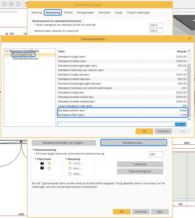 Vanaf versie 12.3a1 kunt u bij het toevoegen van een raam aan een ontwerp er nu voor kiezen om het raam aan de binnen- of buitenkant van de muur te laten zien.