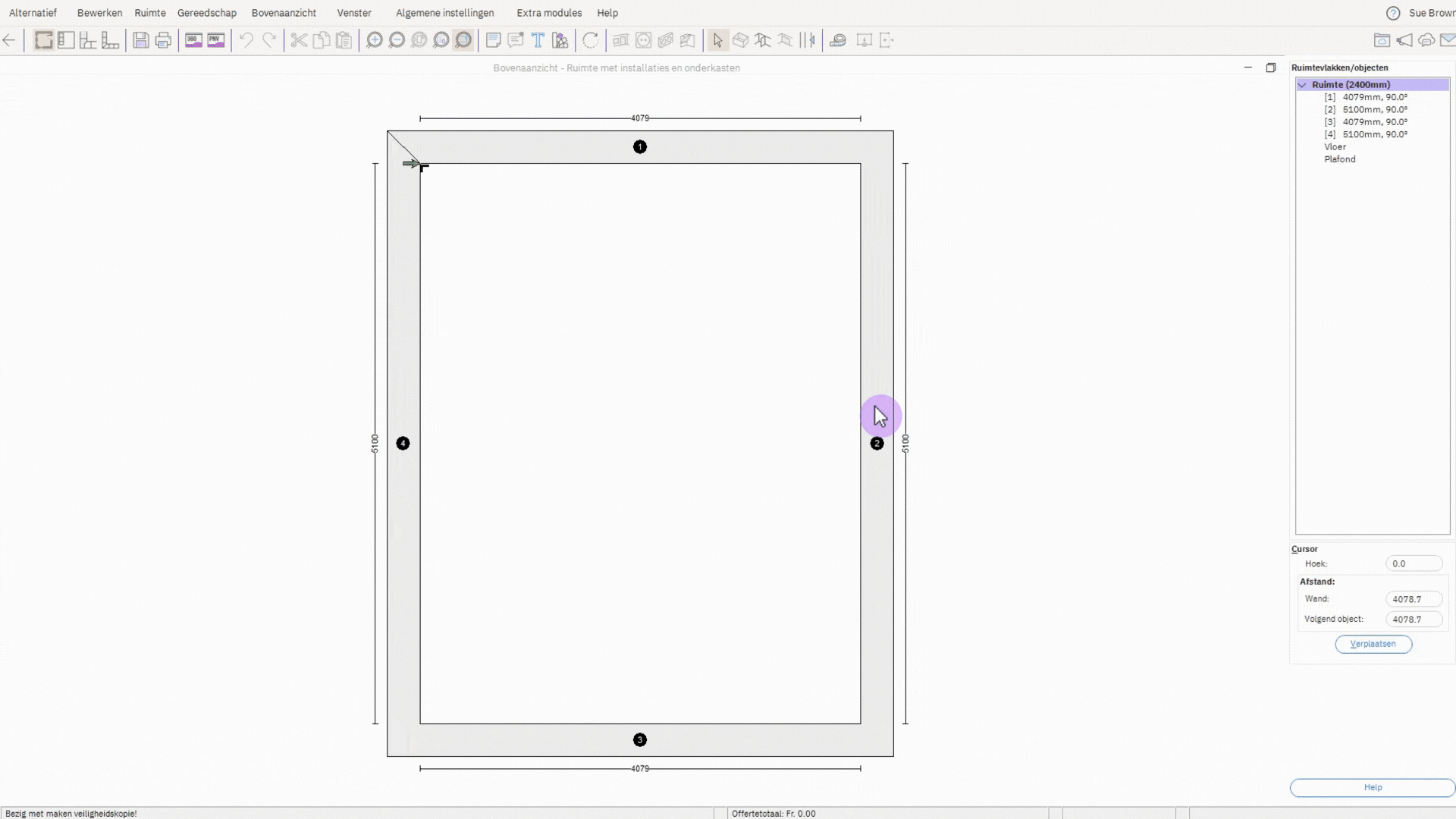 Het is heel gebruikelijk om een ruimte te tekenen en te beseffen dat de afmetingen niet perfect zijn. U hoeft niet opnieuw vanaf het begin te beginnen, vanaf versie 12.4a3 biedt Winner de volgende mogelijkheden om afmetingen aan te passen: