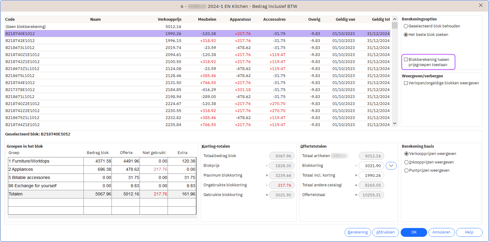 Als u blokberekeningen gebruikt, moet u ook controleren of Blokberekening over prijsgroepen heen toestaan is aangevinkt: