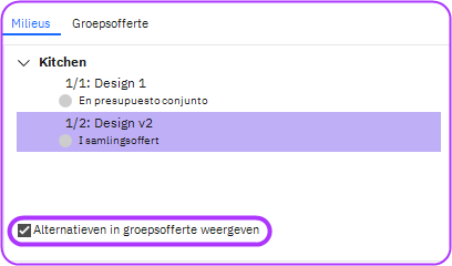In Winner Design, Milieu's worden afzonderlijk weergegeven van Groepsoffertes standaard.