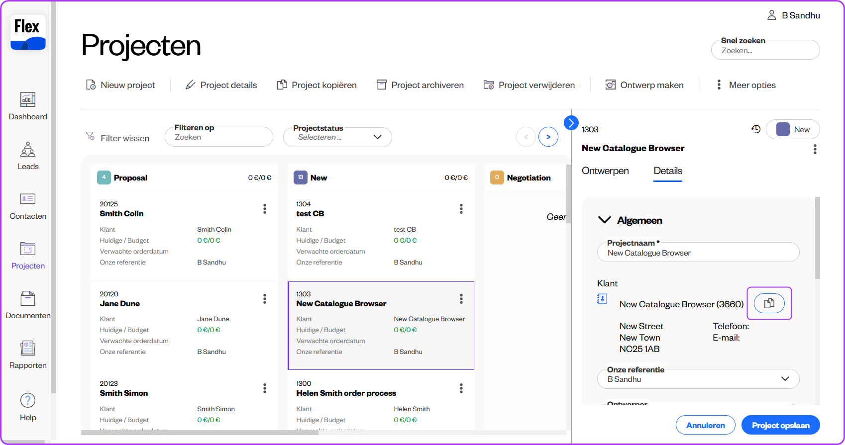 Op het Flex platform kunt u de gegevens van een contactpersoon kopiëren naar het klembord en deze vervolgens in een ander programma plakken. U kunt dit doen via de pagina Projectdetails en via de zijbalk op de pagina Projecten . Voor meer Informatie klik hier.