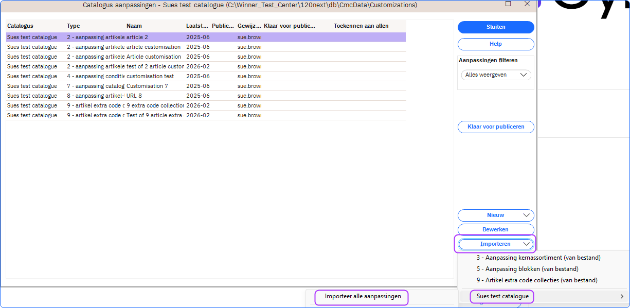 Importeer alle catalogusaanpassingen in één stap