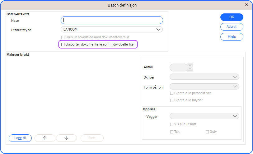 Mulighet for å lage individuelle filer ved bruk av batch-utskrift - Når du oppretter en batch-utskriftsdefinisjon i systeminnstillinger, er det en ekstra mulighet for å lage utskriftene som separate filer. Du kan generere dem på én gang, og de lagres på Flex-plattformen delt inn i ulike typer dokumenter. For eksempel hvis du oppretter en batch med en Kontrakt, som er en salgsdokument, og a Plan, som er en Grafisk dokument, med det nye alternativet vil de nå bli lagret som enkeltdokumenter under den relaterte dokumenttypen. For mer informasjon klikk her.