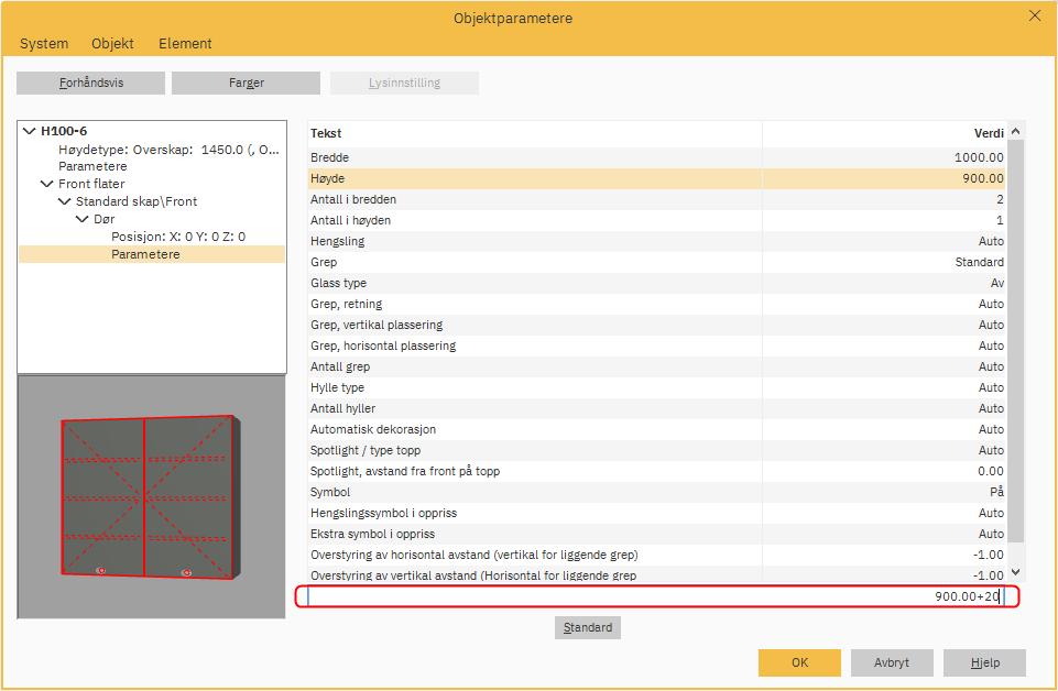 I tekstboksen nederst skriver du inn din nye høyde for døren. Du kan opprette en sum her ved å legge til eksisterende høyde med et bestemt mål.