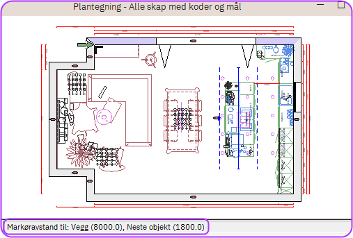 Med innføringen av den nye katalogleseren ble markørplasseringen skjult på en annen fane. Basert på tilbakemeldingene deres har vi lagt til et nytt felt i planvisningen. Markørposisjonen vil nå vises nederst i planen. Denne funksjonen muliggjør mer presis design ved å vise avstanden til veggen og avstanden til neste objekt relativt til markøren. For mer informasjon om å endre markørposisjonen klikk her.