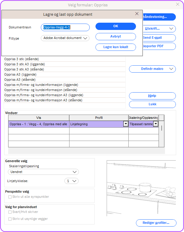 Filnavnforslaget inkluderer veggnummereringen når du lagrer en oppsettingsvisning