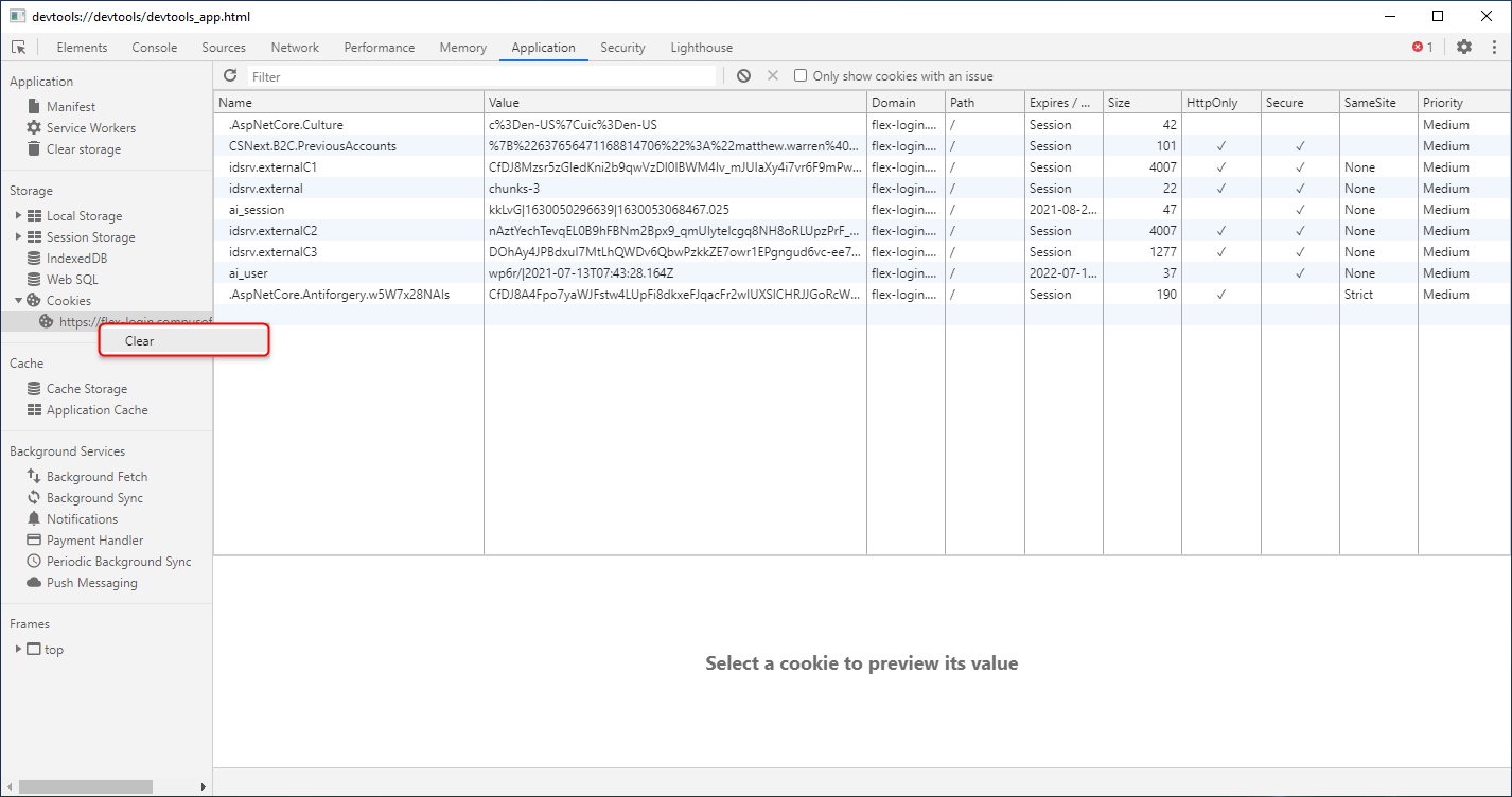 - Høyreklikk https://flex-login.compusoftgroup.com og velg Tøm/Slett: