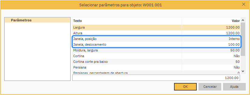 - Na caixa de diálogo Definir parâmetros, selecione Posição da janela e definir como Dentro ou Fora, através do menu suspenso ao pé da caixa de diálogo.