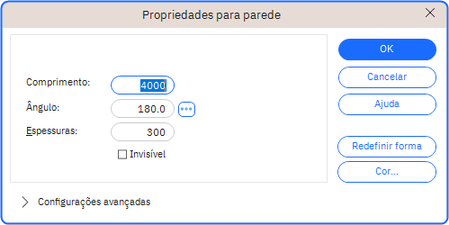 Para ver a lista completa de Propriedades da Parede, clique na seta de Configurações avançadas.