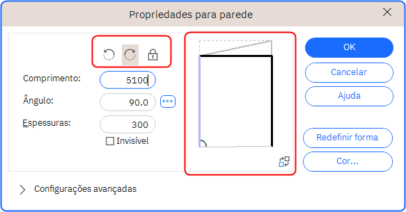 Este campo mostra o ângulo da parede em relação à parede/borda anterior. O valor pode ser editado.