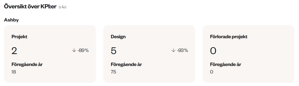 Ny KPI-widget på instrumentpanelen - Baserat på din feedback har vi gjort förbättringar av KPI:erna tillgängliga i instrumentpanelen. De nya widgetarna låter dig se antalet skapade desigs och projekt, tillsammans med förlorade projekt, på användar-, butiks- eller företagsnivå inom en vald tidsram. För mer information, klicka här.