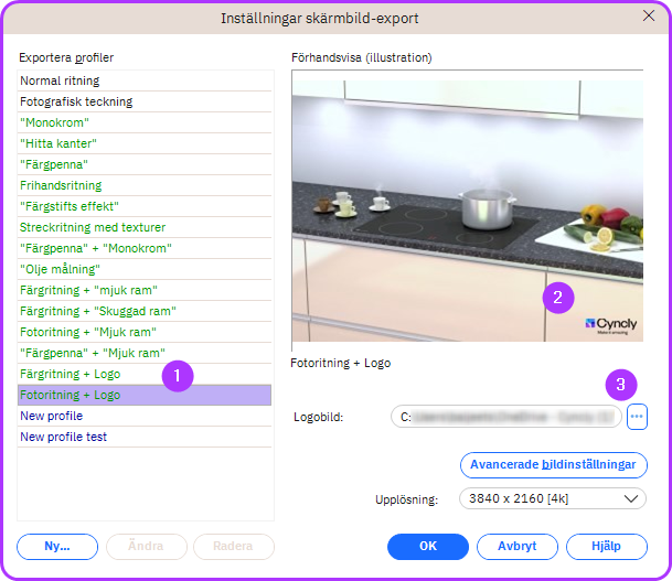 I Winner kan användare lägga till sin logotyp på exporterade bilder med hjälp av Inställningar för bildexport. I Inställningar för bildexport kan användare välja olika exportprofiler. Winner erbjuder standardalternativ som tillåter användare att lägga till sitt företags varumärkeslogotyp på bilden som en överlagring.